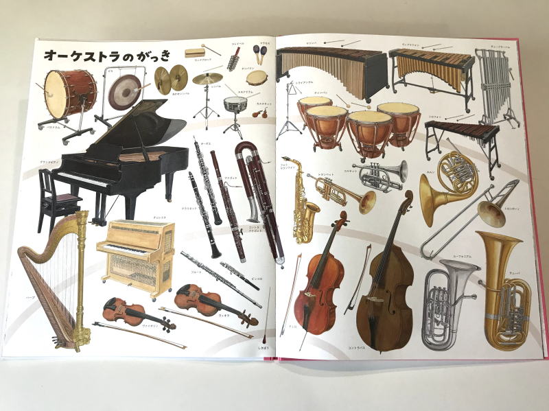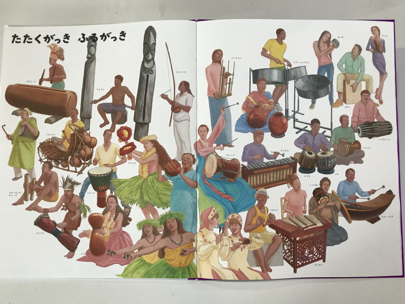 | 絵でみる博物館『いきものづくしものづくし』(発行:福音館書店 販売:こどものとも社)♪ アトリエのヒゲの先生こと山川宗夫氏が『いきものづくしものづくし』(福音館書店)という大型図鑑絵本の4巻中の「オーケストラのがっき」と 10巻中の「たたくがっきふるがっき」のページを担当させていただきました♪ ヒゲの先生が1つ1つ時間をかけて丁寧に手描きをしました。 画材はみんながアトリエでいつも使っているものと同じアクリルガッシュです。 「オーケストラのがっき」は、『トランペットは金色に見えるけど金色の絵の具は使ってないんだよ。』とか 『ピアノも黒い絵の具は使ってないよ。』などヒゲの先生が話すと、生徒のみんなは『うそ〜!』とびっくり。 「たたくがっきふるがっき」は演奏している人物も描かれていて、雰囲気や特徴がよくわかります。 いつでも観られるように、この本はアトリエに常備しましょう♪ 『いきものづくしものづくし』は全12巻。見開き約A2サイズの大型本です。 1冊に7つのテーマが見開きで、それぞれ別の作家が描いています。 どのページも大変見ごたえがあります。 さまざまなテーマを大画面で細部まで見て楽しめる図鑑絵本です。 ※2021年3月より一般販売開始です。 4巻は2021年6月、10巻は2021年12月販売予定です。 |